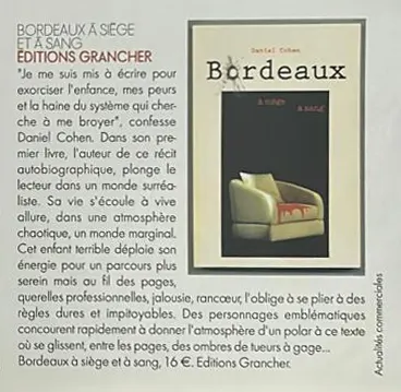 En 2006, il signe son premier roman, Bordeaux à siège et à sang, une œuvre auto-fictionnelle où il révèle, avec une franchise incisive, les coulisses impitoyables du négoce du meuble. Deux ans plus tard, il surprend encore avec Réalité mortelle (2008), un récit fascinant qui interroge l’immortalité et la capacité humaine à repousser les limites du vivant.